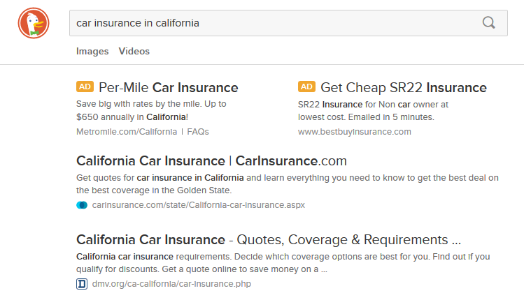 And the sweetener with DuckDuckGo is that they have only one position on top for ads. Naturally, this sets up a highly lucrative difference between the CTR of the top results in DuckDuckGo compared to Google and its bulldozing approach of 4 paid ads on top.