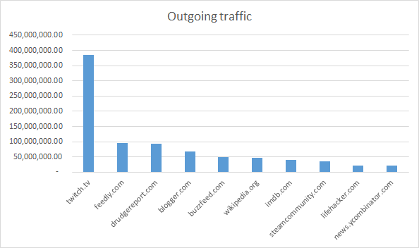 Twitch.tv is the number one referral site in the world and manages to deliver 385 million outgoing desktop visits. Even the fifth most popular, BuzzFeed, still generates a mammoth 50 million outgoing visits, and HackerNews closes the list with almost 20 miillion outgoing visits in January 2016.