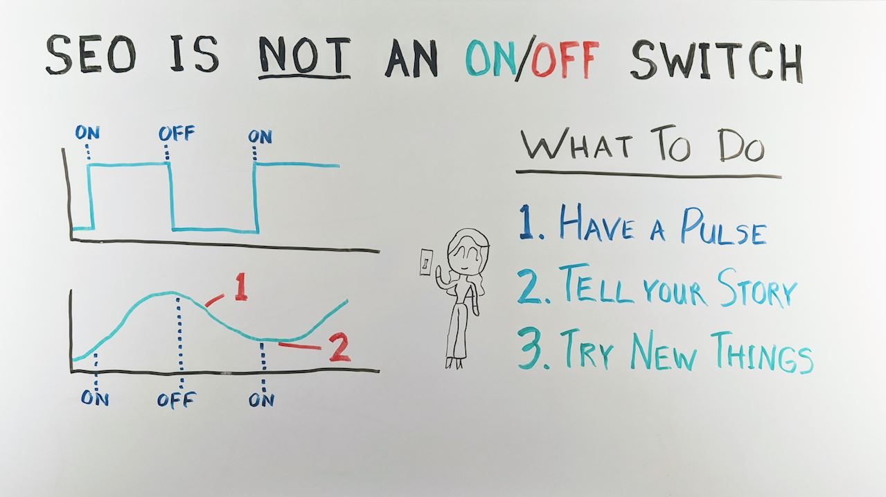 Dr. Pete is here with a brand new Whiteboard Friday to tell you why SEO should not be treated like an on/off switch, and provide some suggestions on what to do instead.