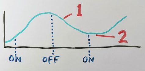 That's not how organic works. Organic does take time. So what happens is you turn it on, and you see this gradual ramp-up. Finally, it starts to peak and level off, and then you turn it off. Let's say budgets are tight.
