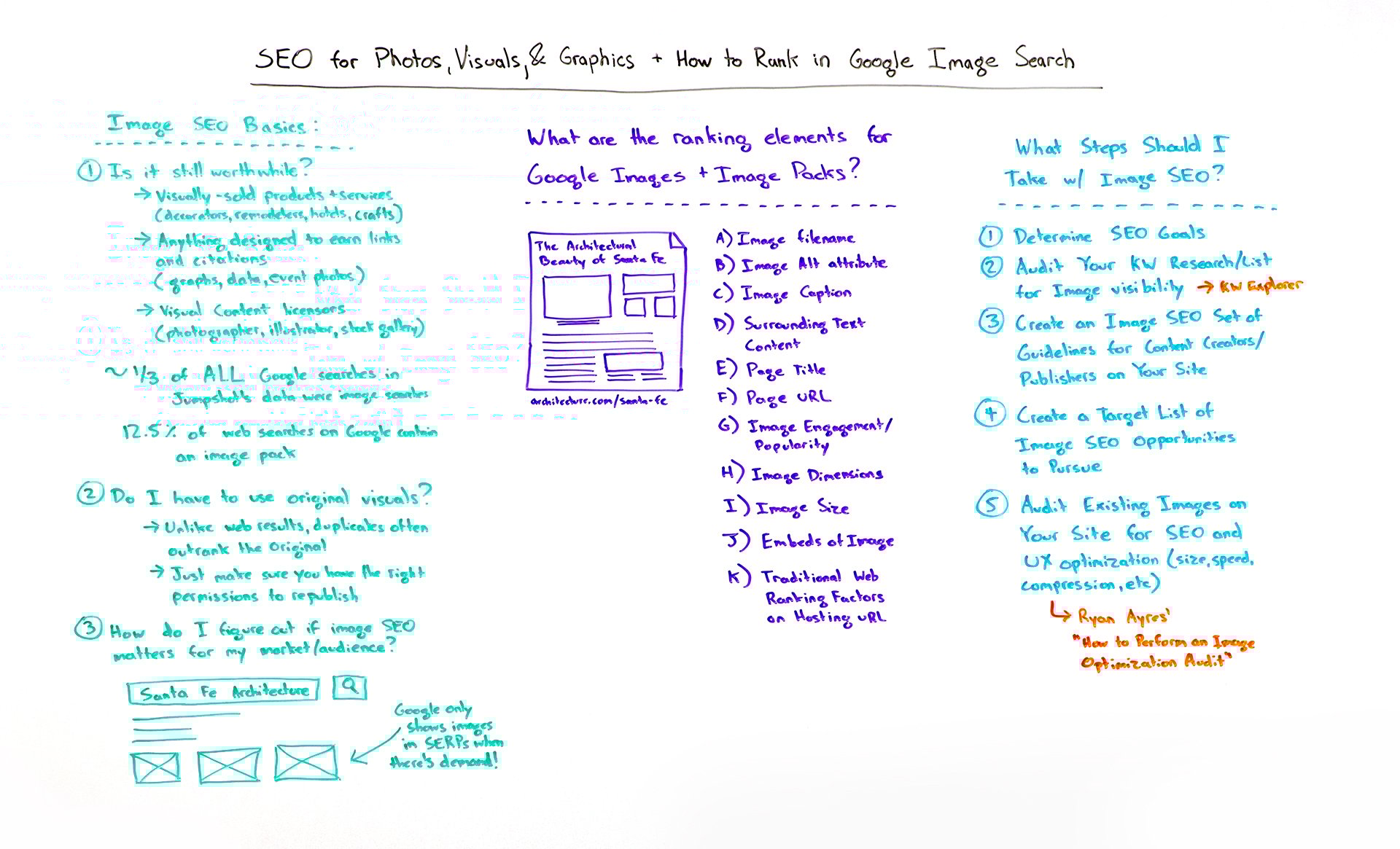 Howdy, Moz fans, and welcome to another edition of Whiteboard Friday. This week, we're going to chat all things image SEO, so SEO for photos, for visuals, for graphics, and talk a little bit about how you rank, not just in Google Image Search, but also in Google in the Image Pack.