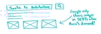 Well, for any given keyword, for example, I searched for "Santa Fe architecture" here, and there's a result, I think at the top. Maybe it's an ad result. Then there's the image block with a few photos in there. Google is only going to show that image block if and when the searchers are actually clicking over to images very frequently, or there are lots of searches directly on Google Images for that term. So Google itself can sort of be that indicator for you of whether there's demand.