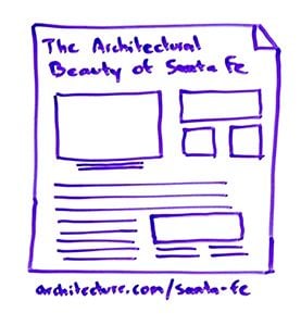 K. Traditional web ranking factors on the existing URL. So if this page, architecture.com/santafe, happened to rank well, in the top five or six or seven for "Santa Fe architecture," chances are good that images from that page would also rank in the first few images results. The reverse isn't always true. But if you can get the ranking in web results, you can generally do well in the image results as well. Why wouldn't you want to? Because you can get traffic from both.