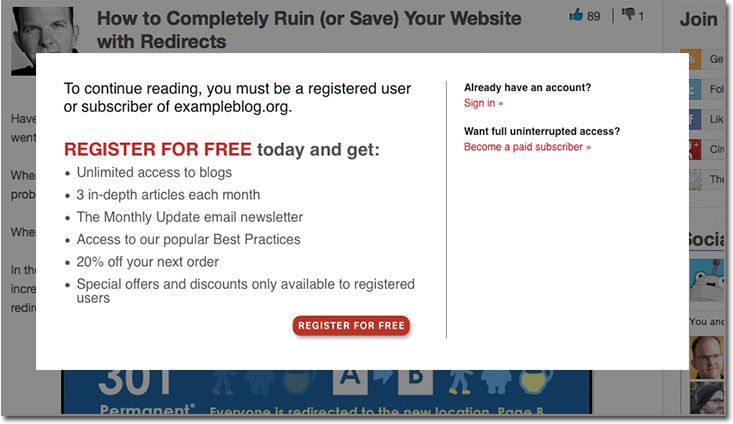Imagine if you will, a site that requires registration to view any content, which is otherwise accessible to search engines. We're seeing these more and more all over the web.