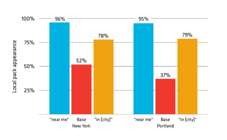 In August 2017, a Think With Google piece stated that local searches without “near me” had grown by 150 percent and that searchers were beginning to drop other geo-modifiers — like zip codes and neighborhoods — from their local queries as well.