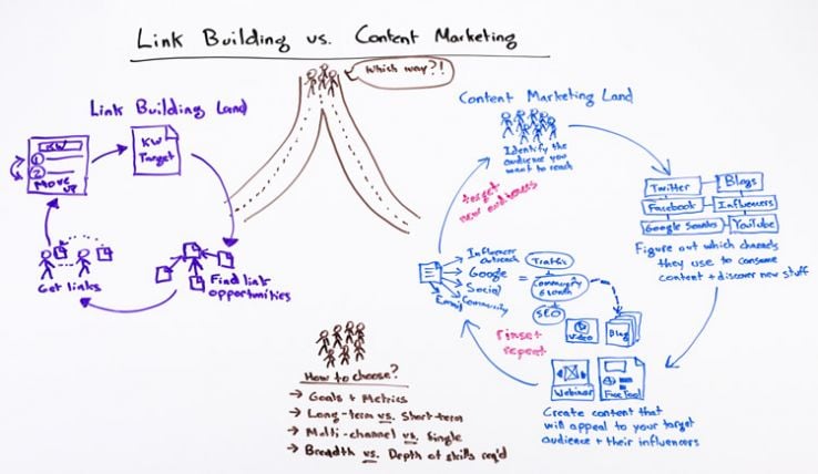 Howdy, Moz fans, and welcome to another edition of Whiteboard Friday. I want to address a dilemma that a lot of SEOs and a lot of marketers face and that is sort of choice between what should I be doing to move the needle on my search traffic? Should I be doing kind of classic SEO, the keyword targeting plus link building, which moves the needle? Or should I be thinking more broadly in terms of kind of a full content marketing spectrum? I'll describe these two, and I'll talk about why it's so tough for these guys who are at this fork in the road.