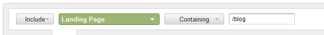 If you have a separate blog where you write and try to generate both links and traffic, it can be helpful to have a way to easily segment out the traffic to just this section of your site. Sure, you could just use the Filter section, but why do this when you can set up an Advanced Segment and have it forever? A little more work in the short term can save some big headaches. Note: this is really only helpful if your blog articles have the URL structure of http://www.site.com/blog/(post-url) Here is how I have set up an Advanced Segment to do just this: