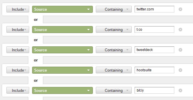 Sometimes you need to see the easy breakdown of your referral sources, and even more often it can be helpful to see just your Social Media traffic. Here is how we have our Social Media Advanced Segment set up in the Distilled Analytics account: