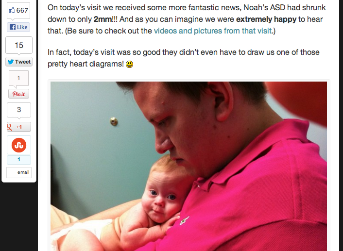 Like the post "An Update And History On Noah's Heart Conditions." Rick doesn't just write an endless sea of prose after the fact. He brings you there with him. There's photos. There's drawings of Noah's heart. And there's actual medical information.