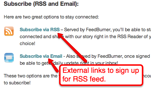 Add these to all links you feel it would be worthwhile to track - like an RSS email subscription at the top of the page: