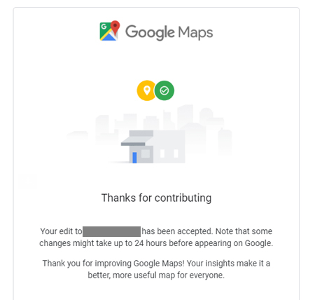 Within an hour of filing my reports with Google, I received an email like this for 5 of the 6 entries I had flagged: