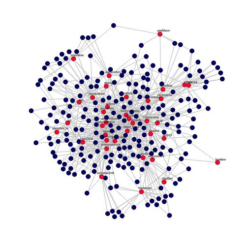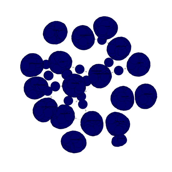 If you are automatically tweeting every interesting article that comes your way, and you have a large network of people who do the same in an attempt to game the signals, here is the image of how Bing might view those manipulated ranking signals (the below is an example of a "Like Farm"). Check out all of the hubs on the image below: