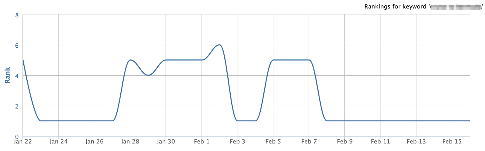 There’s been a great deal of speculation on this fact, but now I can confirm that ranking for a featured snippet doesn’t come the same way as ranking for a true spot 1. In the case below, you can see a client of ours dancing around spots 5 and 6 before taking a snippet. Similarly when they lose the snippet, they fall back to the original position.