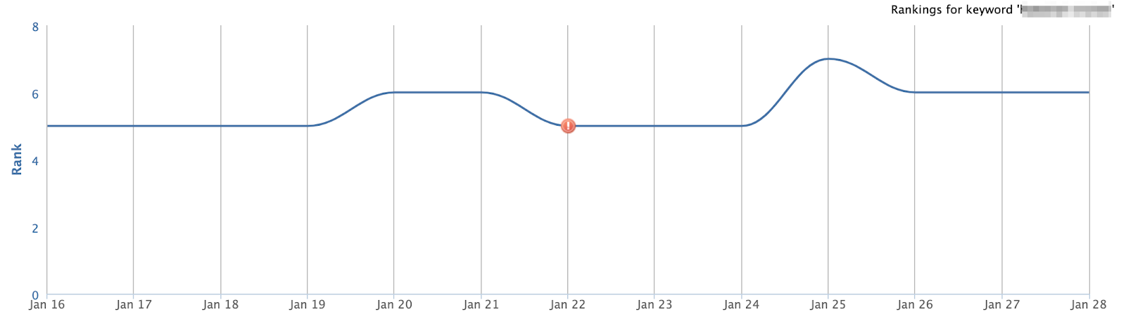 The screenshot from STAT shows that this keyword has clearly remained below the fold and fairly consistent. If anything, it ranked worse after January 22nd.