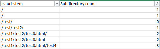 The above formula looks like a bit of a doozy, but all it does is check if there is a trailing slash, and depending on the answer, count the number of trailing slashes and subtract either 2 or 1 from the number. This formula could be shortened if you remove all trailing slashes from your URL list using the RIGHT formula — but who has the time. What you’re left with is subdirectory count (starting from 0 from as the first subdirectory).