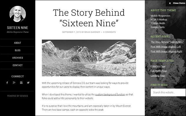 This led to another decision, though. The Sixteen Nine theme was part of the Genesis framework. The price tag ($99.95) wasn't a big stumbling block for me, but it would mean committing to that framework.