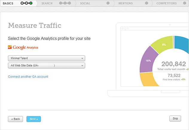 Part of the point of this project is to get back in the trenches with our customers and do a better job understanding our product as a marketer. So, I set up a new campaign in Moz Analytics, and I connected my Google Analytics account right away (which is an option during campaign creation):