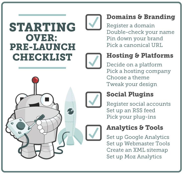 TL;DR – Register and protect your social accounts ASAP and set up authorship via Google+. Pin down your social links and SEO plug-ins prior to launch.