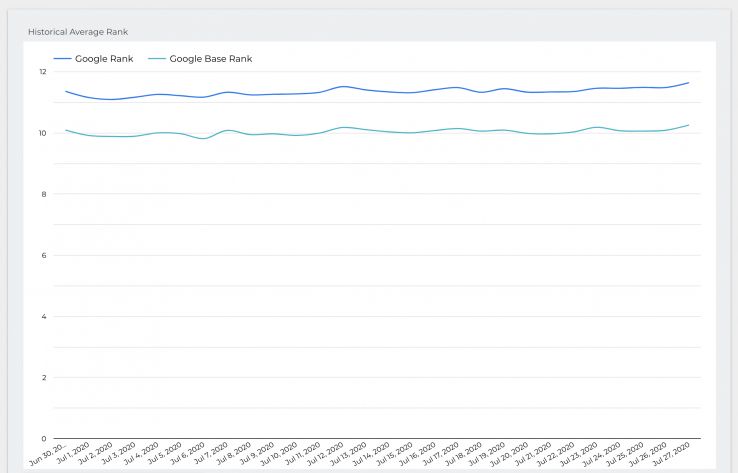 Turn that table into a line graph to understand average rank for the whole site or tag and spot trends: