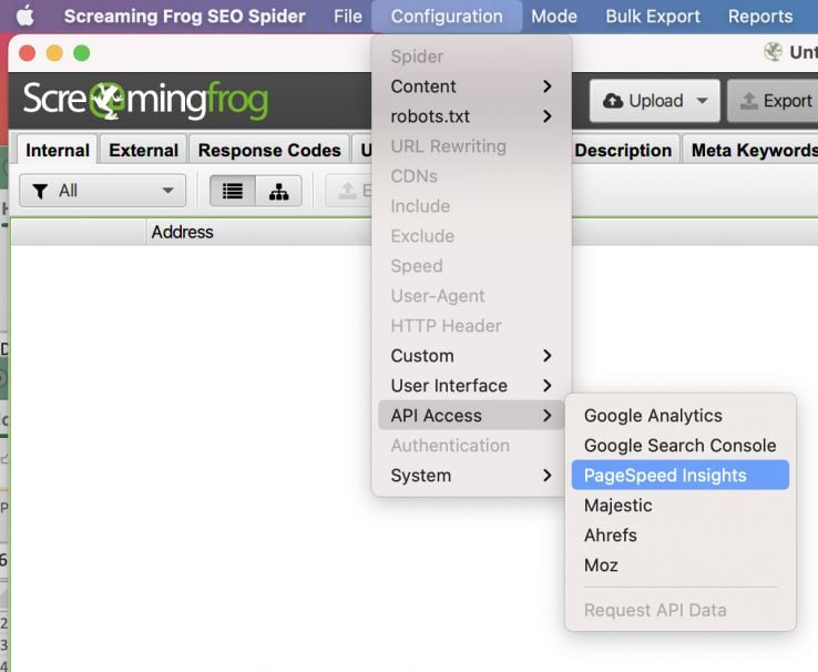 APIs: I highly recommend using the Pagespeed Insights Integration to pull Lighthouse speed metrics directly into your crawl data. If you have a Moz account with API access, you can also pull link and domain data from the Moz API with the built-in integration.