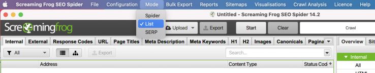 List Mode: Paste in a de-duplicated Full URL list from your STAT data. In my case, this was 6,600+ URLs.