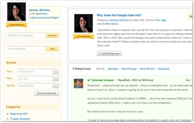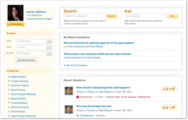 - Earn mozPoints by answering questions well