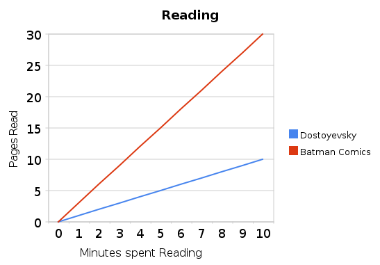 Here is a linear example: assuming I read at a constant rate, the amount of pages I can read is linearly correlated with the length of time I spend reading.