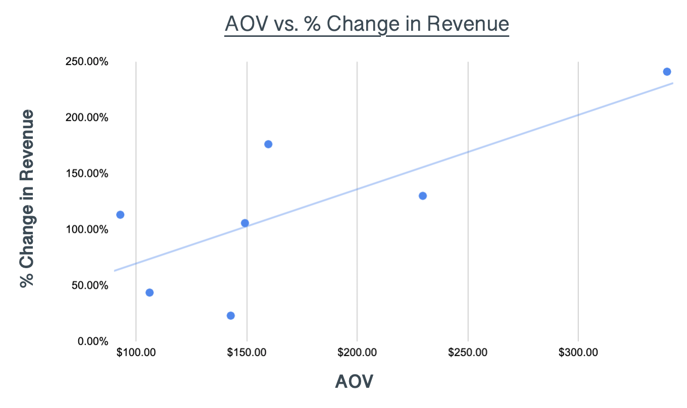 Observation #3: There’s a positive correlation between AOV and % change in revenue
