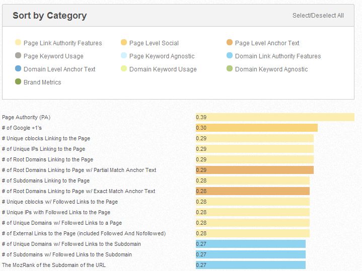 The two major factors in ranking that you can have an effect on are related to the target page. Having relevant content and strengthening the page are what you should be focused on as a search marketer. Look at the highest correlated factors to ranking from the 2013 Ranking Factors Survey. All of the top factors are page-related.