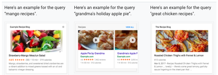 Google’s rich cards examples for "Recipe"