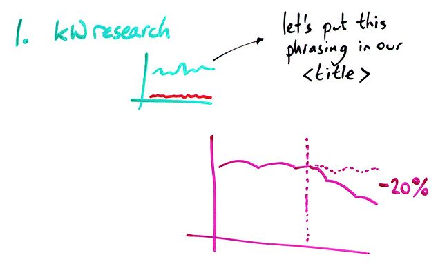 We saw up to 20-plus-percent drops in organic traffic after updating meta information in titles and so forth to target the more commonly-searched-for variant. Various different reasons for this. Maybe you end up with a worse click-through rate from the search results. So maybe you rank where you used to, but get a worse click-through rate. Maybe you improve your ranking for the higher volume target term and you move up a little bit, but you move down for the other one and the new one is more competitive.