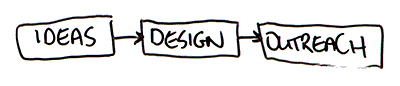 We tend to think of the content process as something like this. You come up with your ideas. You do the design, then you do the outreach, and then you stop. In reality, what you should be doing is actually going back to the start and redoing this over and over again for the same piece of content.