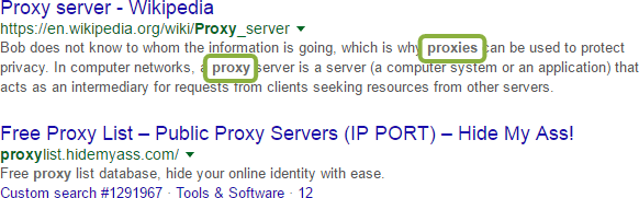 Google is also fully capable of understanding the reverse. Let's say, for example, that a "friend" of mine wants to buy proxy IPs. He might search for "proxies":