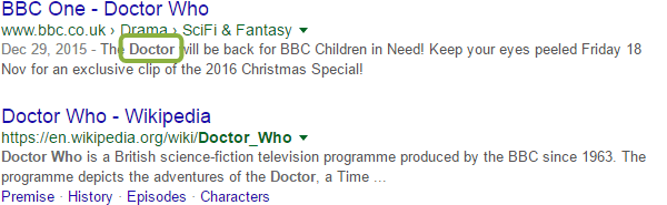We've moved from simply synonyms to a world of answers. Here's another example, a search for "Doctor Who villains":