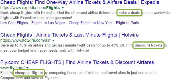 Synonyms ("discount airfare")