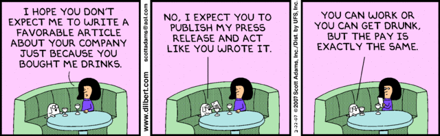 - Are briefings about topics I cover and care about. I'll never write anything related to a pitch that starts "Because you cover the Internet (really, they say that!) I know you'll want to write about ____." Nope! You don't know what I want to write about. I'll make that decision.