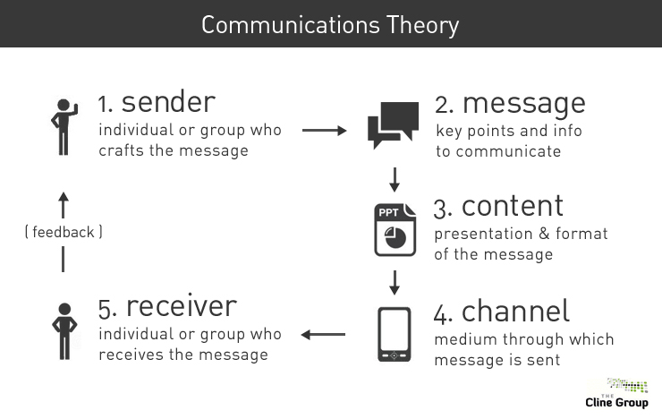 Above is our modern version of traditional communications and marketing theory. A sender decides upon a message; the message is packaged into a piece of content; the content is transmitted via a desired channel; and the channel delivers the content to the receiver. Marketing is essentially sending a message that is packaged into a piece of content to a receiver via a channel. The rest is just details.