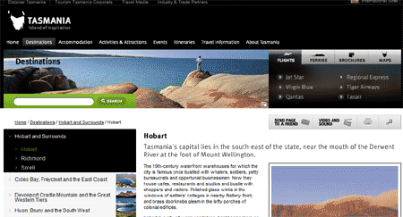 Clearly, you can see a page from Flightcentre.com outranking DiscoverTasmania.com's page about Hobart, yet something looked fishy. The lack of a cached version indicates that they're trying to hide something, so we decided to investigate further. Clicking on the Flightcentre.com link, you're brought to this page: