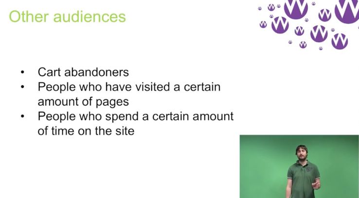 There are a few other types of audiences to take note of that you might want to target. These could be cart abandoners, those who've visited a certain number of pages, or those who have spent a certain amount of time on your site — these people are more likely to be engaged with your site and your products.
