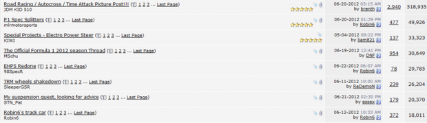 I've included links to the best examples I could find. Clearly videos are a huge hit and have an enormous audience, but there isn't a single channel dominating street racing videos. The street racing forum is relatively active and I honestly could not find good examples of comparison charts on different racing tires or even a single linkworthy site of street racing resources. Clearly, there is an opportunity for a company who might be interested in targeting the street racing demographic to become the online authority of street racing.