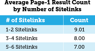 Sitelinks usually appear for queries that either have a strong brand connotation or at least a dominant interpretation. While we typically use 6-packs of expanded sitelinks as an example, actual counts can vary from 1 to 6. Originally, the presence of any sitelinks yielded a 7-result SERP. Now, it's gotten a bit more complicated, as shown by the table below: