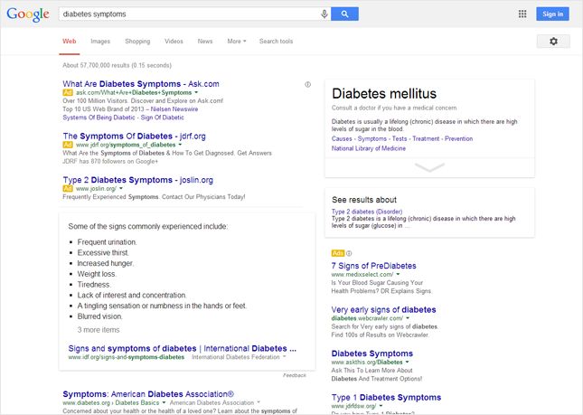 As a group, we SEOs still tend to focus most of our attention on just one place – traditional, organic results. In the past two years, I've spent a lot of time studying these results and how they change over time. The more I experience the reality of SERPs in the wild, though, the more I've become interested in situations like this one (a search for "diabetes symptoms")...