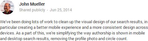 We had seen authorship shake-ups in the past, but the largest recent drop had measured around 15%. It was clear that Google was rethinking the prevalence of author photos and their impact on perceived quality, but most of us assumed this would be a process of small tweaks. Given Google's push toward Google+ and its inherent tie-in with authorship, not a single SEO I know had predicted a complete loss of authorship photos.
