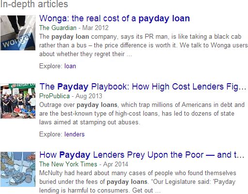 Here's an example set of in-depth for a term SEOs know all too well, "payday loans":