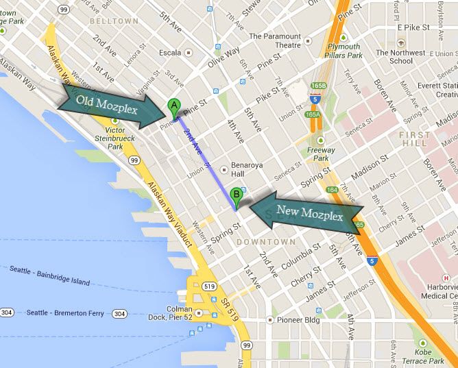We didn't move very far, just a few blocks south on 2nd Avenue in downtown Seattle. We're excited that we only had to walk a couple blocks to watch the Seahawks victory parade!