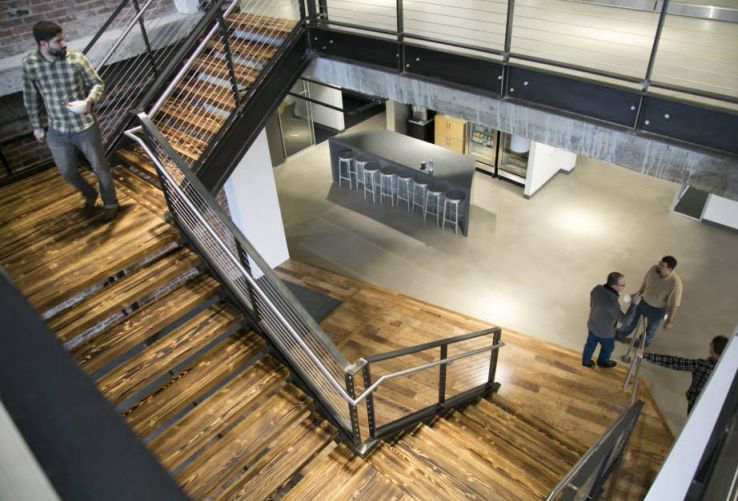 Once you answer me these questions three, the rest of the office you shall see! (We'll actually just let you go in.) One of the main focal points of the MozPlex is the stairwell. Who knew stairs could be so cool? It's made out of torched fir and hemlock, because why have regular fir when it can be torched?