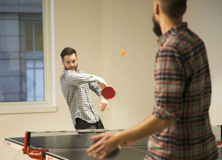 Walk past the stage, and you'll find a ping pong table (also a Seattle tech company requirement). Check out Ryan's mean backhand!