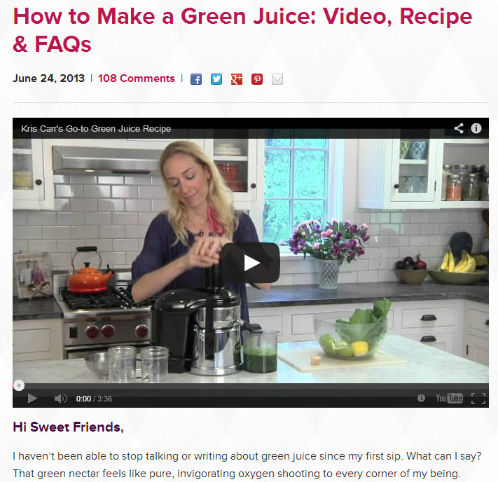 It turns out that Kris Carr is a New York Times award-winning author and has also made a documentary called Crazy Sexy Cancer. I think that it goes without saying that having a relationship with Kris would be hugely beneficial for any food-related content marketing campaign.