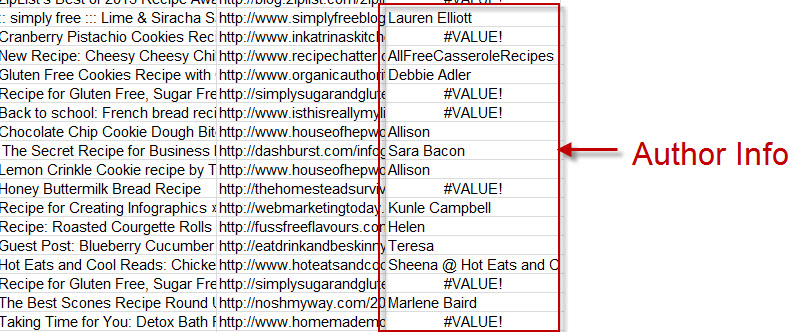 It's a matter of going and entering some of the content URLs from each author to see who is sharing their stuff. You can then create a separate sheet for this information and use it to understand the value of each author.