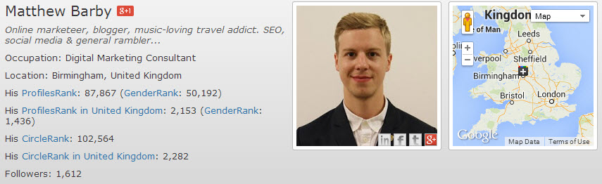 The CircleRank of someone relates to their authority within Google+. You can gather this information for free by typing in their name or profile URL here.
